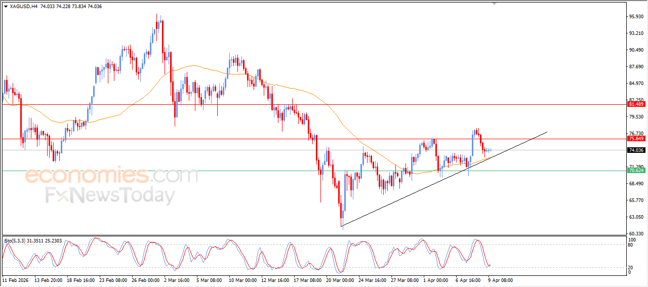 Silver witnessed sideways fluctuating trading in tight range during its recent intraday levels, amid the attempts of gaining bullish momentum that might help it to recover and rise again, supported by its trading above EMA50, reinforcing the stability and dominance of the bullish corrective trend on short-term basis, especially with its move alongside supportive trend line for this path, noticing the emergence of positive overlapping signals from the relative strength indicators, after reaching oversold levels, exaggeratedly compared to the price move, indicating the beginning of forming positive divergence.