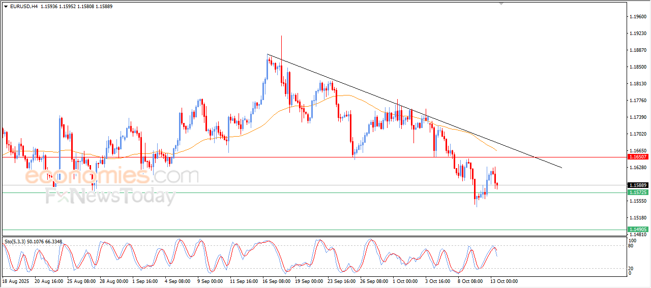 The price of (EURUSD) declined in its last intraday trading, amid the dominance of the main bearish trend on the short-term basis and trading alongside supportive trend line, with the continuation of the negative pressure due to its trading below EMA50, besides the emergence of negative divergence on the relative strength indicators, after reaching exaggerated overbought levels compared to the price movement, with the emergence of negative signals from there.