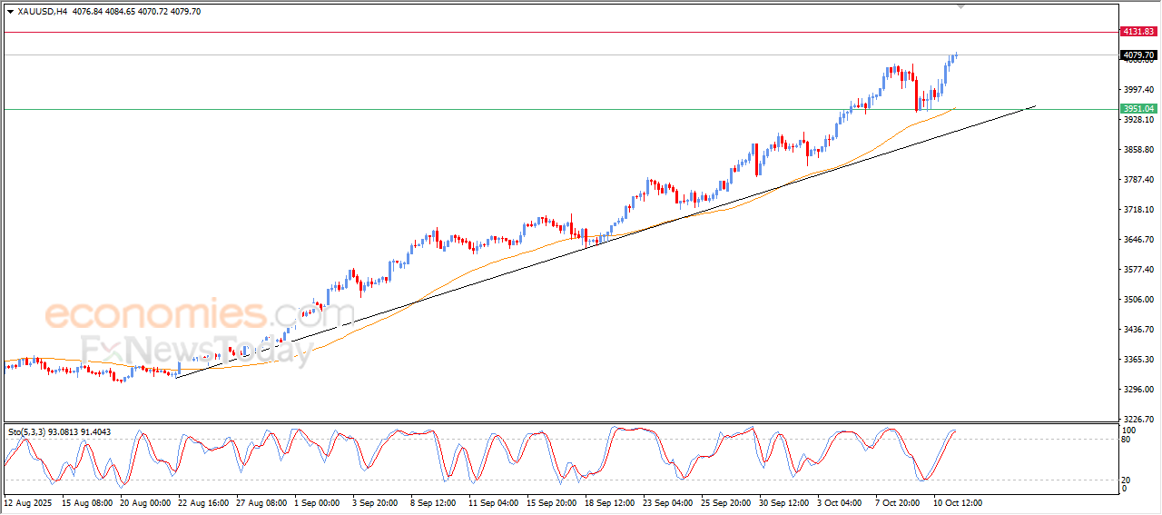The price of (gold) continued the bullish rally in its last intraday trading, recording new all-time highs amid the emergence of the positive signals on the relative strength indicators, despite reaching overbought levels, which might reduce its upcoming gains, amid the continuation of the positive pressure due to its trading above EMA50, and under the dominance of the main bullish trend on the short-term basis.