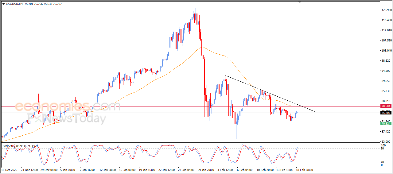 The price of (silver) settles in its last intraday trading, supported by the emergence of the negative signals from relative strength indicators, noticing that the relative strength indicators reached exaggerated overbought levels compared to the price move, which makes the last gains threatened by a rebound at any moment, especially with the continuation of the negative pressure due to its trading below EMA50, under the dominance of the bearish corrective trend on short-term basis, with its trading alongside supportive minor trend line for this path.