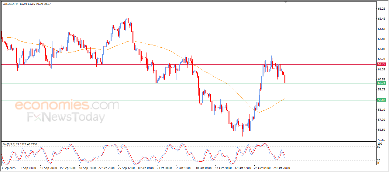 The price of (crude oil) declined in its last intraday trading, amid the attempts of looking for a rising low to take it as a base to help it gain the required bullish momentum for its recovery, by the emergence of the negative signals on the relative strength indicators, after offloading its oversold conditions, amid the continuation of the dynamic support that is represented by its trading above EMA50, and under the dominance of the bullish corrective trend on the short-term basis.