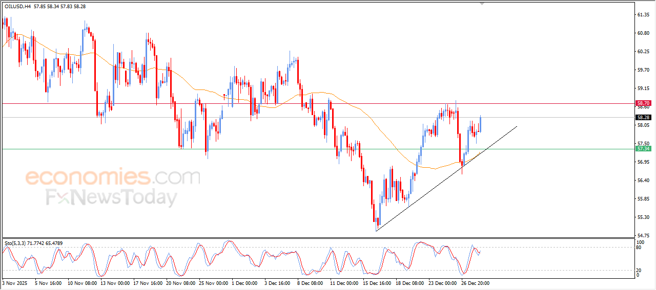 The price of (crude oil) witnessed strong gains in its last intraday trading, supported by its continuous trading above EMA50, reinforcing the strength and dominance of the main bullish trend on the short-term basis, especially with its trading alongside trend line, this last rise came after offloading its overbought conditions on the relative strength indicators, with the emergence of positive overlapping signals from there.