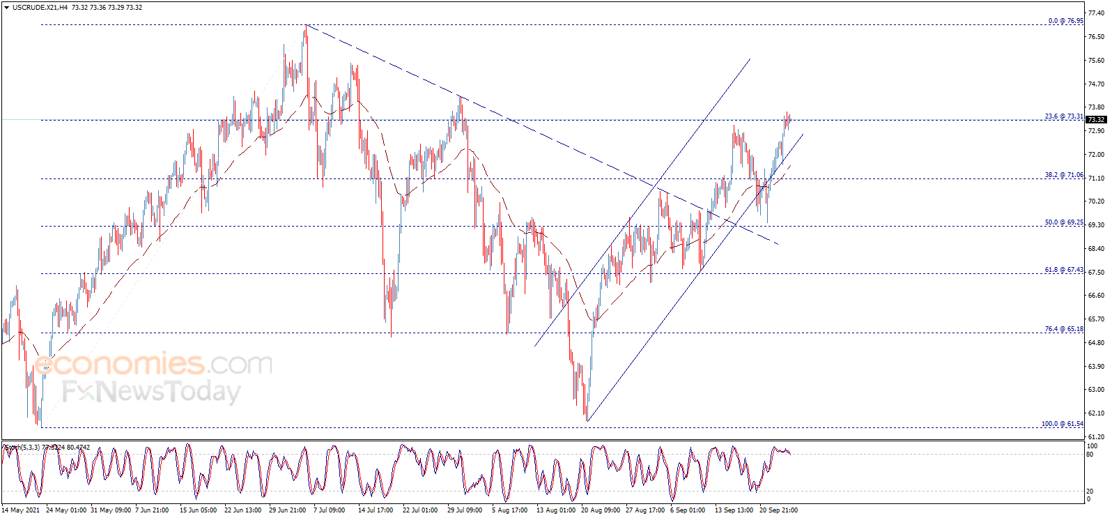 Crude oil price hovers around 73.30 level since morning, waiting to get positive motive that assists to push the price to resume the bullish trend that targets 75.00 as a next main station, to keep the bullish trend valid and active conditioned by confirming breaching 73.30 and building support base above it.