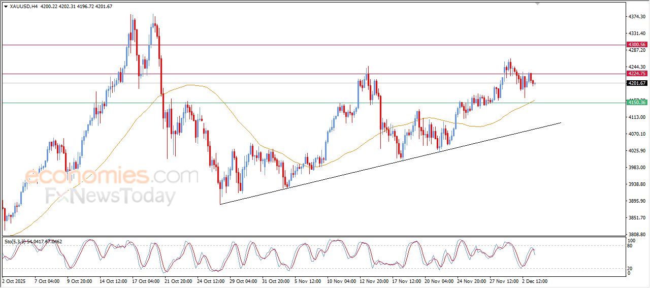 Gold (GOLD) declined in its latest intraday trading as negative signals began to appear on the RSI indicators after reaching overbought levels. This comes while the price attempts to acquire positive momentum that may help it break the pivotal and stubborn resistance level of $4,225, supported by ongoing dynamic strength from trading above its 50-day SMA, which reinforces the dominance of the short-term ascending trend, especially with movement alongside an upward trendline.