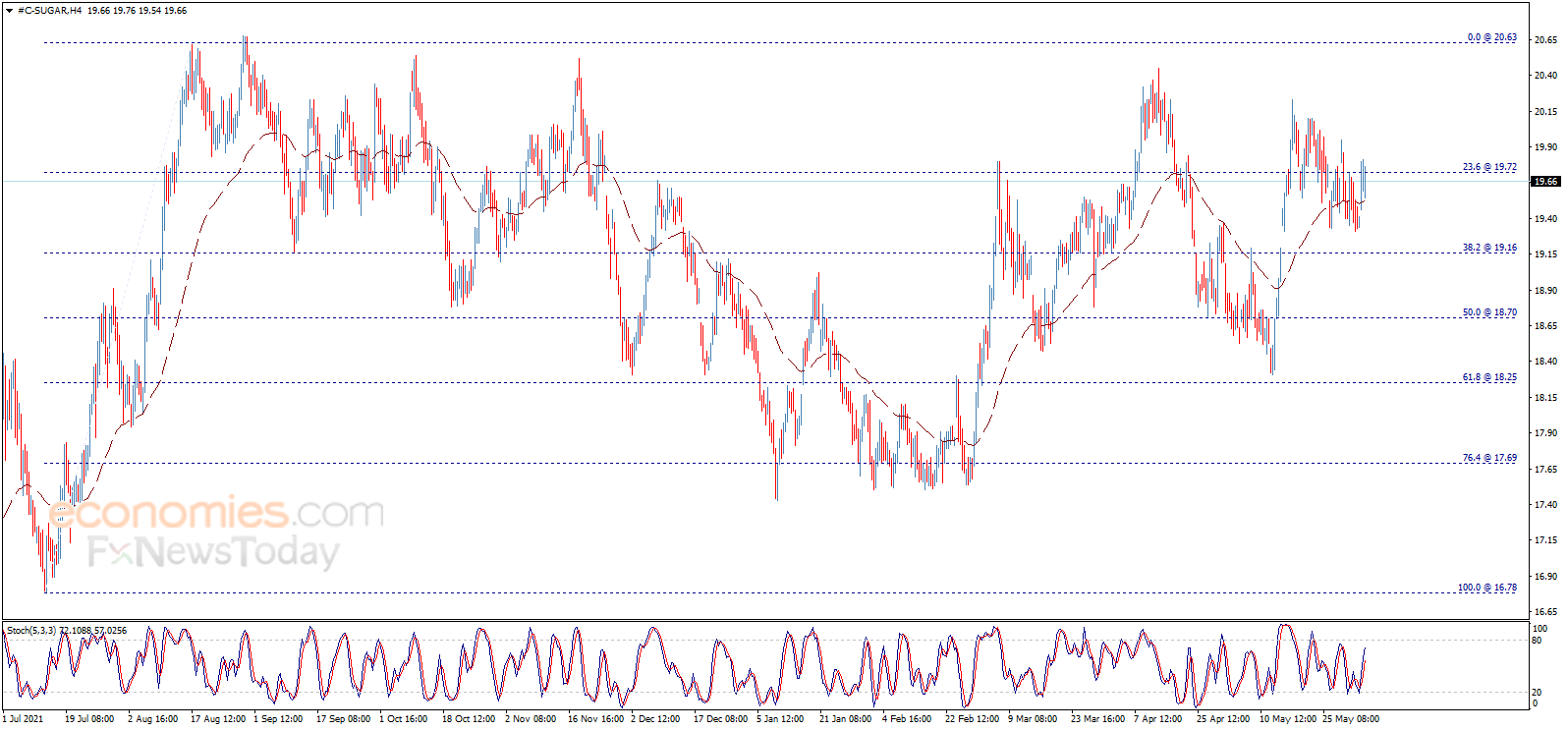 Sugar price attempted to breach 19.72 yesterday but it kept its consolidation below it, to keep the bearish trend scenario active until now, supported by stochastic loss to the positive momentum, waiting to test 19.16 initially.