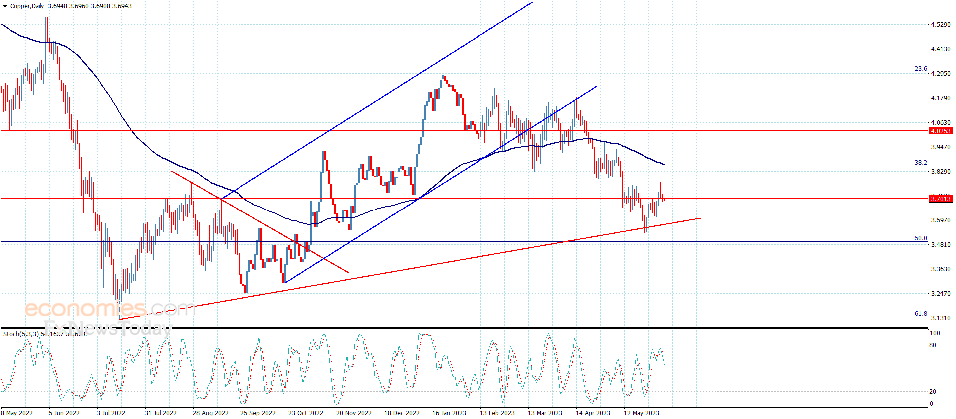 Copper price kept its stability above 3.5600 support line, forming some correctional bullish waves by touching 3.7800 level, followed by affected by stochastic exit from the overbought areas to rebound towards 3.7000 quickly.