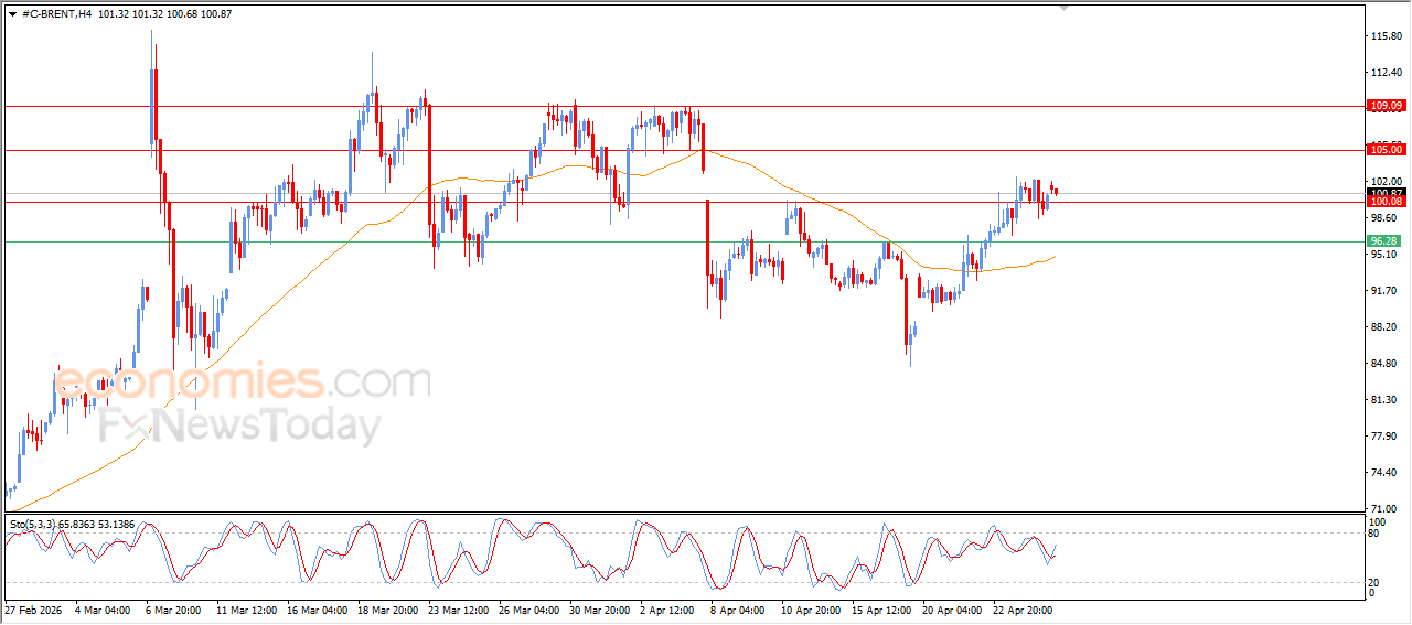 Brent crude oil declined slightly during recent intraday trading as part of profit-taking after previous gains, attempting to regain positive momentum and resume its bullish trend. Despite this decline, the price remains stable above the key level of $100.00, which is considered a strong technical breakout confirmation, supported by trading above EMA50, which acts as dynamic support, with positive signals from relative strength indicators after offloading overbought conditions, providing more room for potential further gains in the near term.