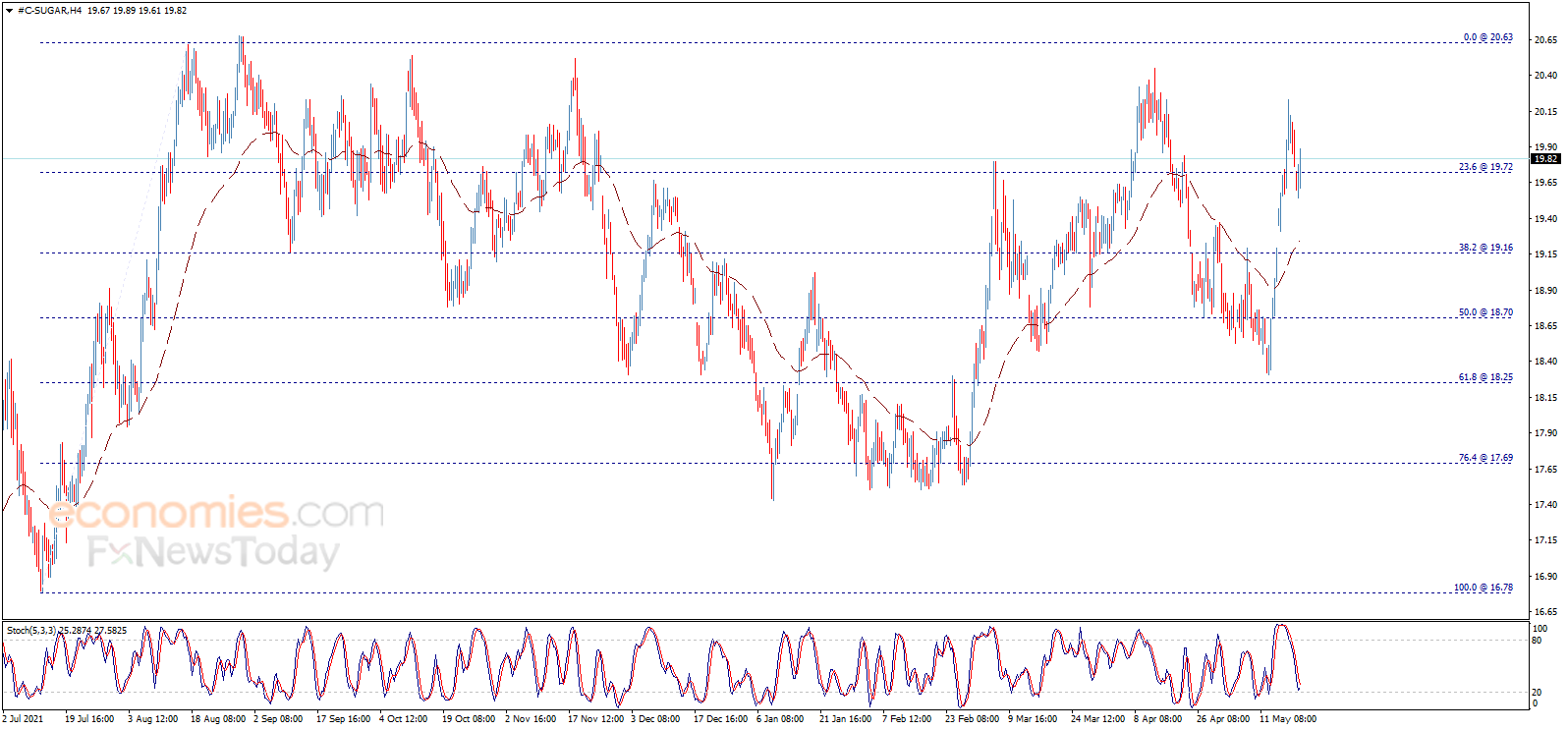 Sugar price ended yesterday above 19.72 level, to keep the bullish trend scenario active for the upcoming period, supported by stochastic positivity, waiting to head towards 20.00 followed by 20.63 levels as next main targets.