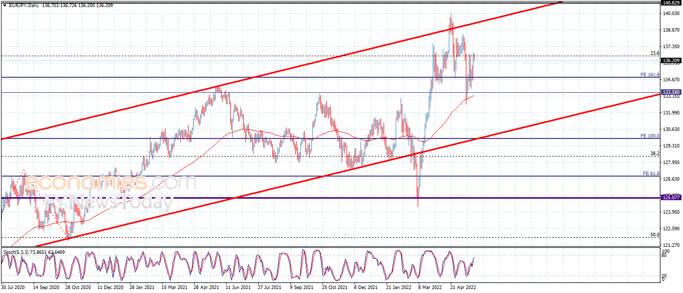 The EURJPY pair gained a new positive momentum yesterday, which allows it to form a new bullish rally, repeating the pressure on 136.80 level and that forms an obstacle against the last bullish attempts, stochastic attempt to approach from 80 level will provide extra positive momentum to ease the mission of achieving the required breach, to expect targeting new positive levels that might begin at 137.10 and 137.90.