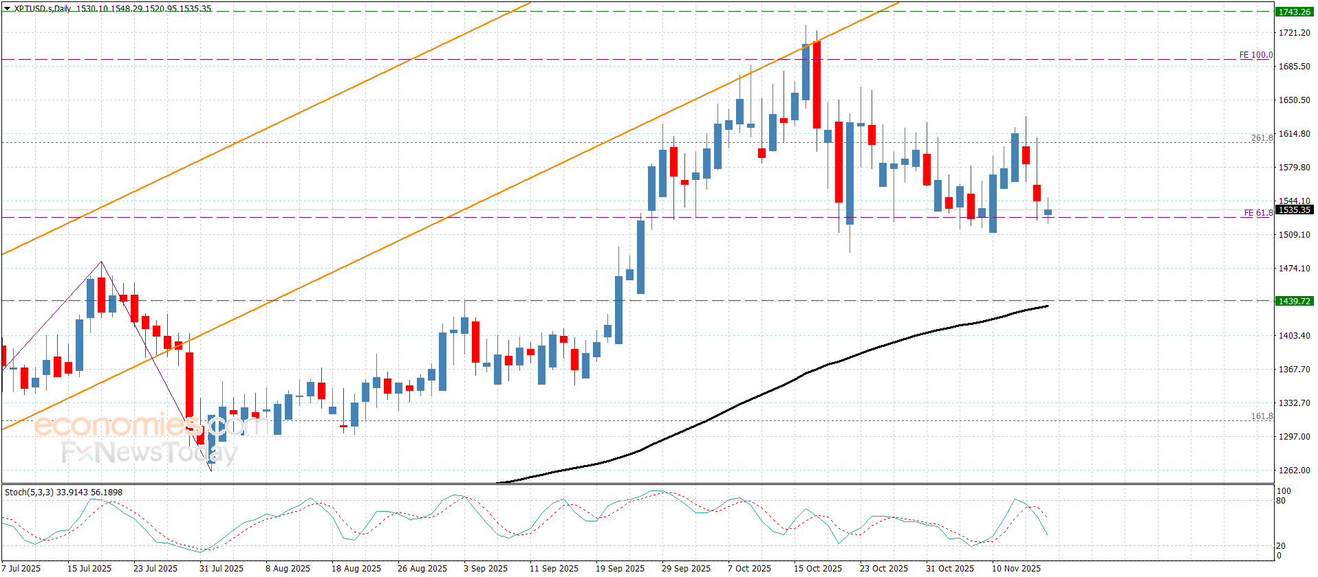 Platinum price failed to settle for long time above $1605.00 level, activating with stochastic negativity to provide clear negative pressure on %61.8 Fibonacci extension level at25.00.