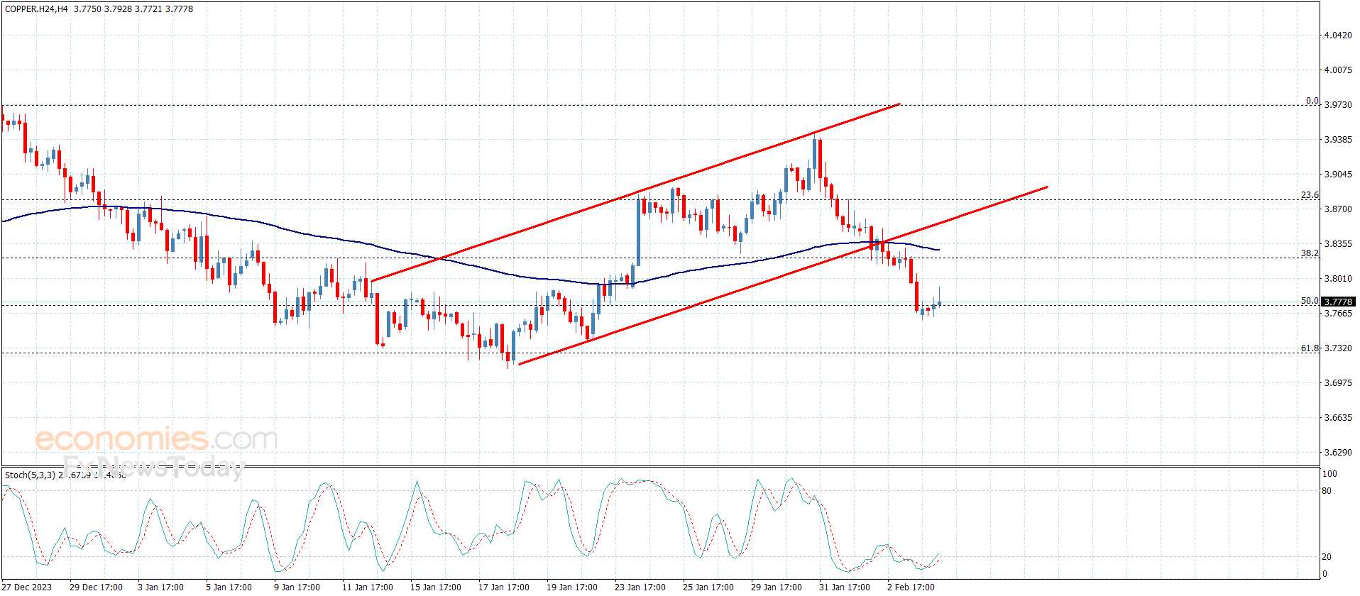 Copper price confirmed its surrender to the bearish bias domination by providing frequent closings below the minor bullish channel’s support line at 3.8650, to notice suffering some losses by moving towards 3.7600 level.