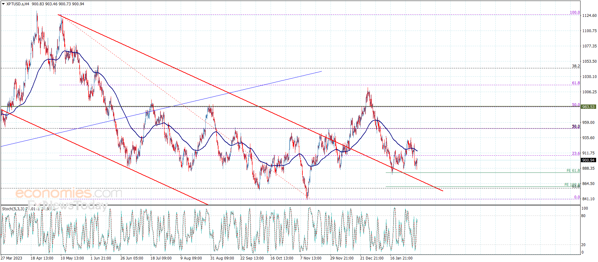 The expected trading range for today is between 910.00 and 880.00