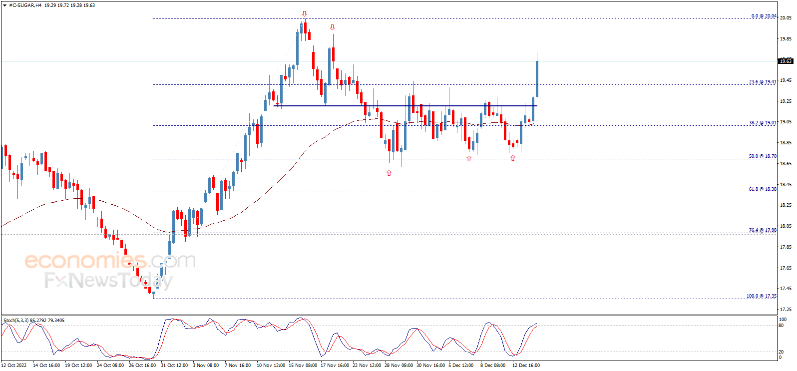 Sugar price rallied upwards sharply yesterday to breach 19.40 level and settles above it, to stop the correctional bearish scenario and head towards resuming the main bullish track, paving the way to visit the recently recorded high at 20.04 as a next target.