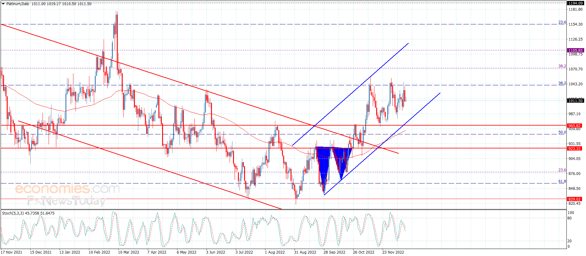 Platinum price returned to provide closings below 1040.00 barrier, to push the price to provide clear negative rebound by reaching 1010.00, and despite the main stability within the bullish channel, facing negative pressures might force the price to suffer some losses by crawling towards 995.00 followed by reaching the bullish channel’s support line at 975.00.