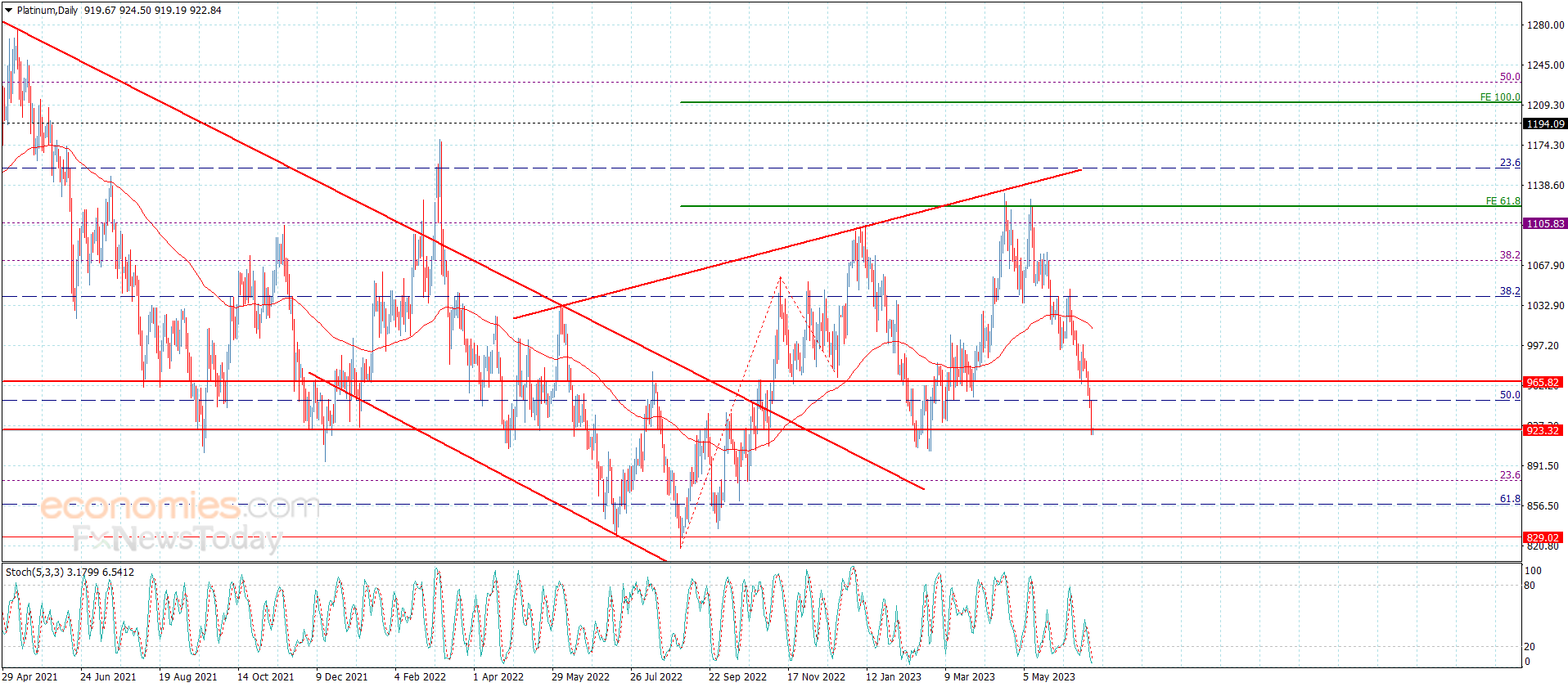 Platinum price resumed the negative attack to achieve the target at 925.00, noticing the attempt to surpass it and confirm its preparation to target more negative stations in the near term and medium term period, also, 965.00 forms additional barrier to increase the efficiency of the bearish track, to keep waiting to target 903.00 followed by reaching 878.00 that might form the next main target for the negative trades.