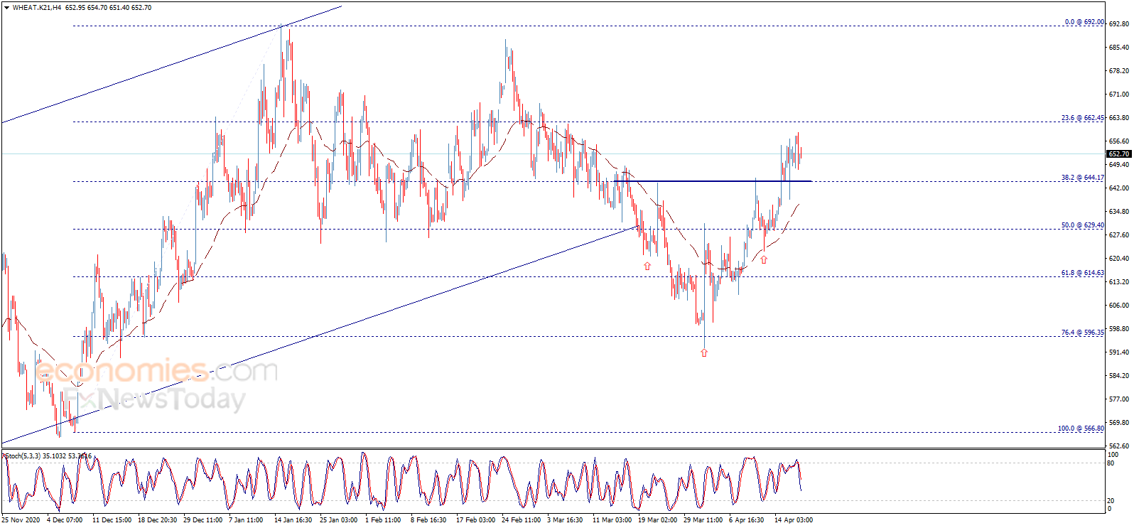 Wheat price provided mixed trades in the previous sessions, as it approached our waited target at 662.45 and bounced bearishly to settle around 650.00, noting that the positive effect of the inverted head and shoulders’ pattern still active, to support the continuation of the bullish trend scenario on the intraday and short term basis.