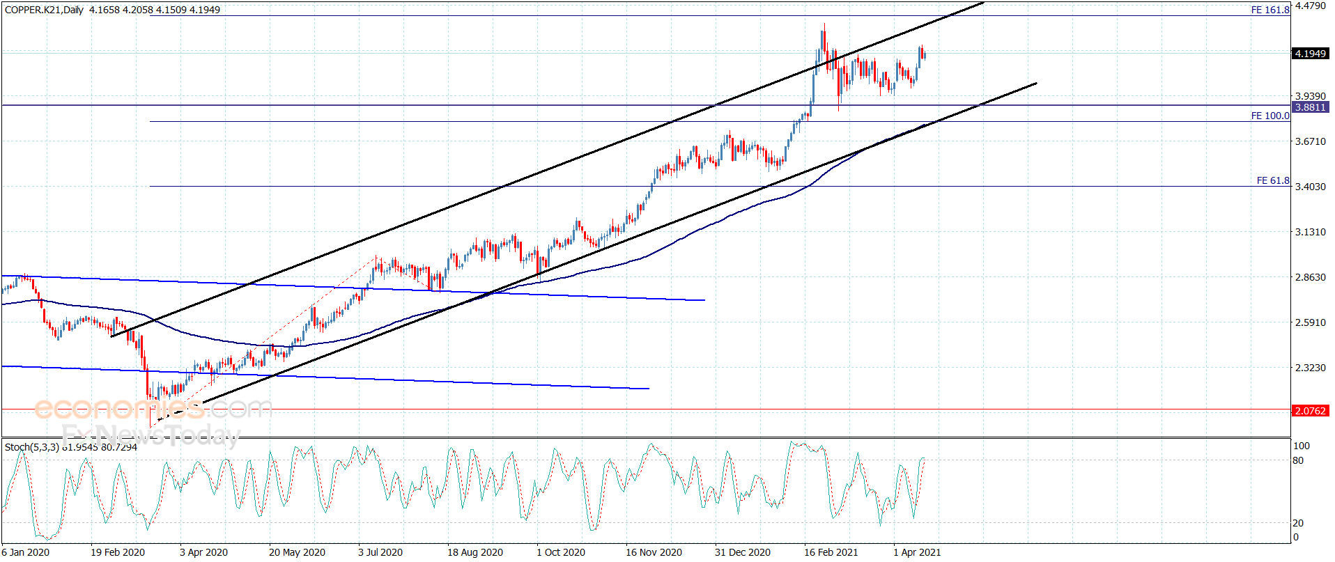 Copper price succeeded to hold above 4.1600 level, to form additional support against the bullish trades and reinforce the continuation of the suggested positivity, also, stochastic continues to provide the positive momentum to allow us to wait to achieve additional targets that might extend towards 4.3200 and 4.4200 levels soon.