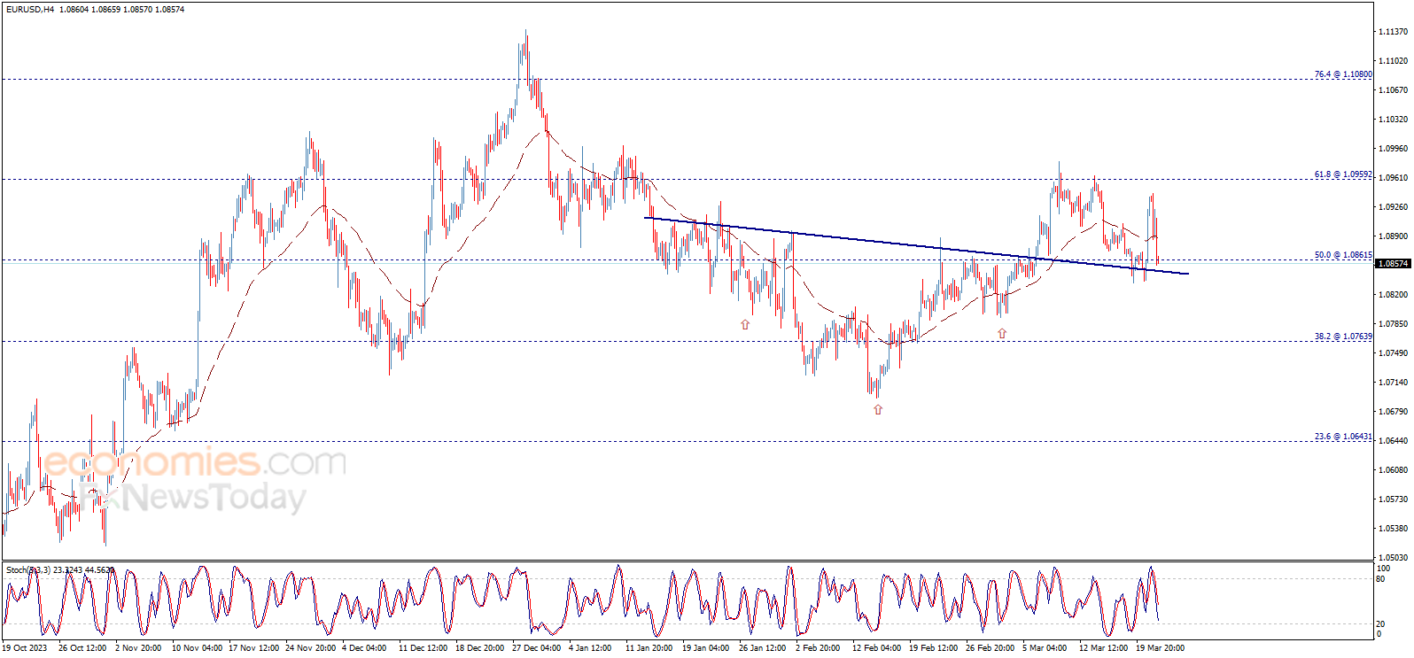 The EURUSD price shows additional negative trades to attack 1.0860$ level and attempts to break it, which urges caution from the upcoming trading, as continuing the decline and breaking 1.0845$ will stop the expected positive scenario for today and push the price to suffer additional losses and turn to decline, to pave the way to achieve negative targets that start by visiting 1.0765$ areas.