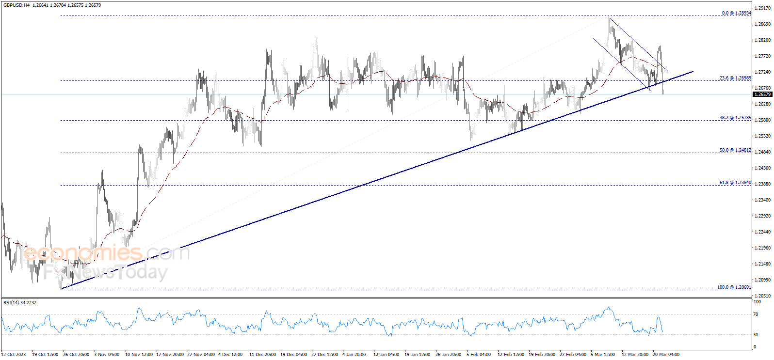 The GBPUSD price faces strong negative pressure to break 1.2695$ level and settles below it, opening the way to start bearish correction for the rise that started from 1.2070$ areas, noting that closing the day below the broken level will confirm the continuation of the bearish trend domination and head to visit 1.2580$ as a next correctional target.