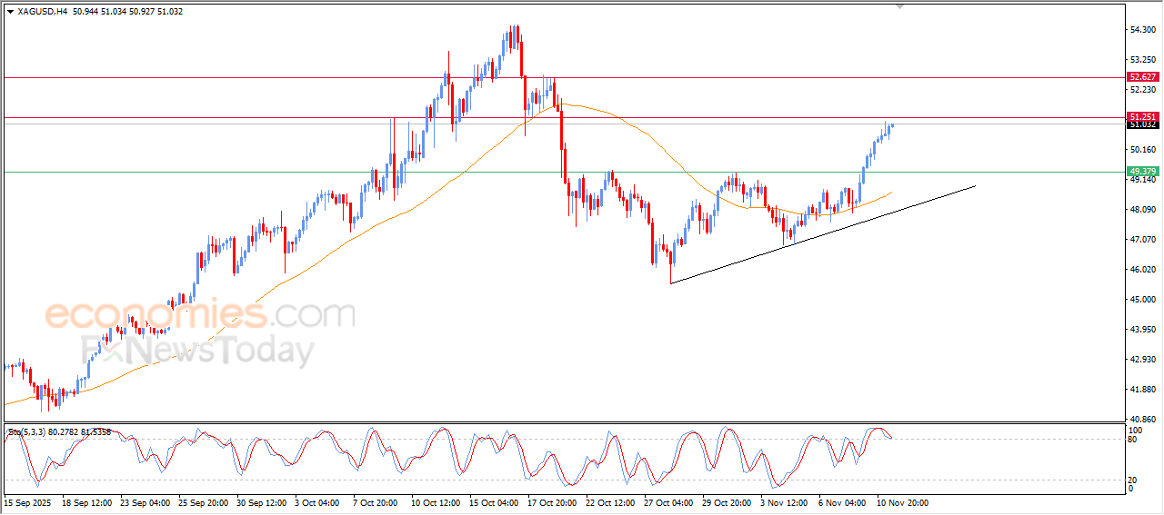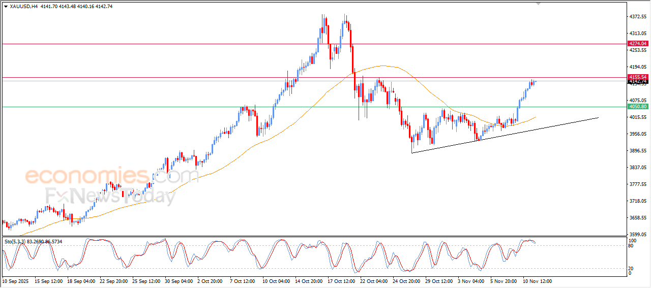 The price of (Gold) settled in its last intraday trading, getting ready to attack the key resistance at $4,155, which represented potential target in our previous analysis, supported by its continuous trading above EMA50, and under the dominance of minor bullish wave on the short-term basis and its trading alongside trendline, on the other hand, we notice the emergence of the negative signals on the relative strength indicators, after reaching overbought levels, which reduced the last gains due to its neediness to offload these overbought conditions.