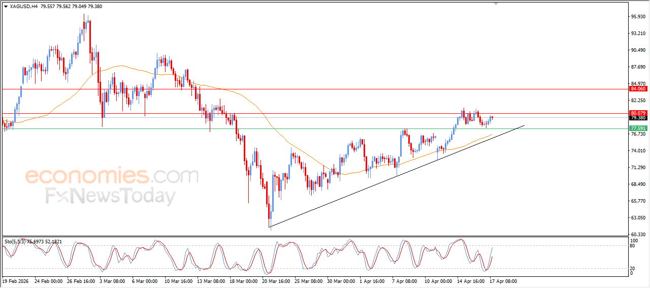 Silver price settles higher in its recent intraday trading , taking advantage of the positive signals from the relative strength indicators, after forming positive divergence that helped it achieve these gains, preparing to attack the key resistance at $80.00, supported by its continued trading above EMA50, reinforcing the stability and dominance of the bullish corrective trend on the short-term basis, with its trading alongside supportive trend line for this path.