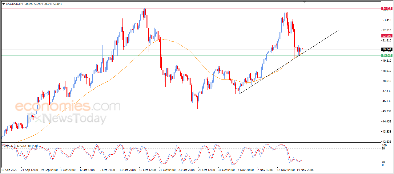 The price of (silver) fluctuated on an intraday basis, leaning on minor bullish trendline on a short-term basis, in attempt to gain bullish momentum that might help it to recover and rise again, accompanied by the emergence of the positive signals on the relative strength indicators, after reaching oversold levels.