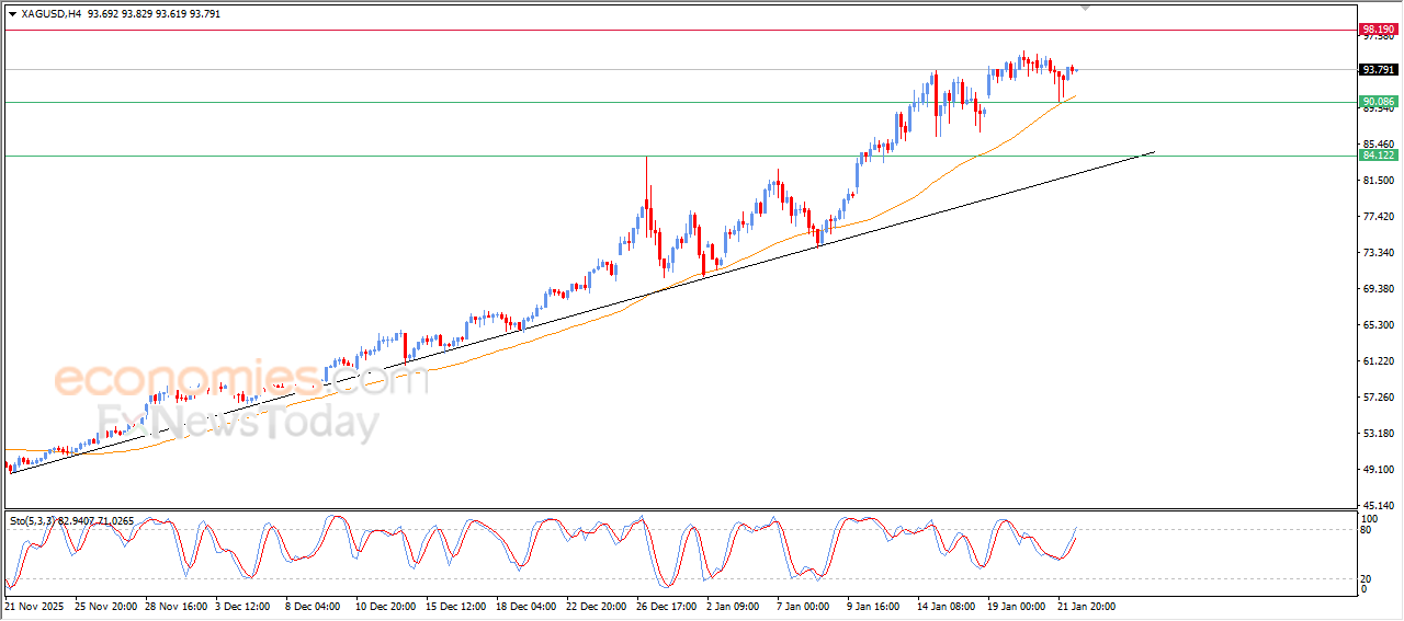 The price of gold rose in its last intraday trading, to settle above the main resistance at $4,800, taking advantage of the dynamic support that is represented by its trading above EMA50, reinforcing the stability and dominance of the main bullish trend on short-term basis, especially with its trading alongside minor trend line, noticing the negative signals from the relative strength indicators, after offloading its overbought conditions on relative strength indicators, after offloading its overbought conditions, opening the way for achieving more gains on near-term basis.