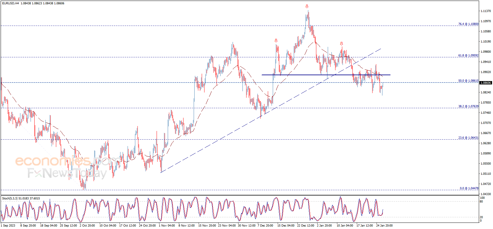 The EURUSD pair provided new negative trades to approach 1.0800 barrier, and returns to test the key resistance 1.0860 and keeps its stability below it until now, to keep the expectations of continuing the bearish trend for the rest of the day, which targets 1.0765 initially, affected by the previously completed head and shoulders’ pattern.