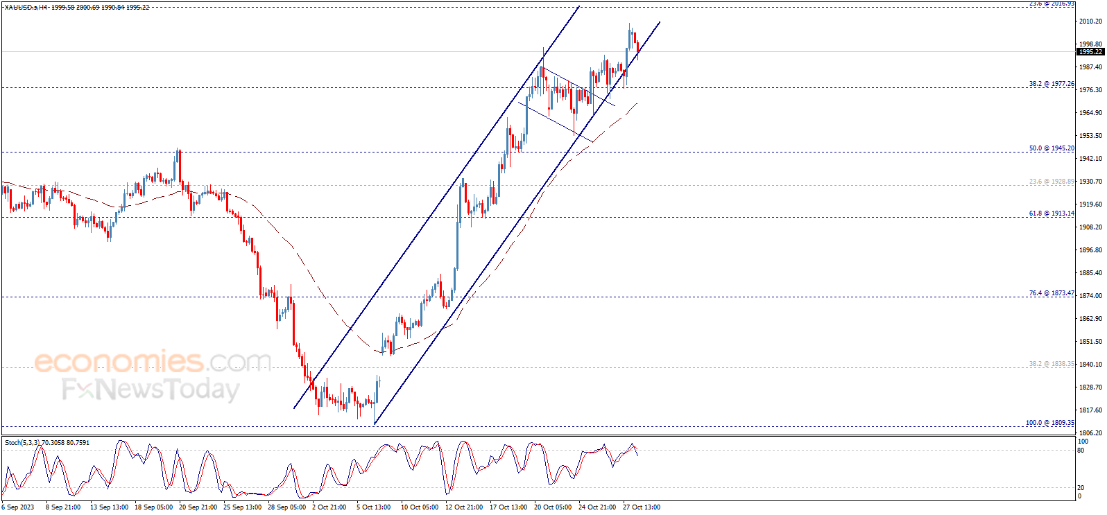 Gold price faces negative pressure to test the bullish channel’s support line, affected by stochastic negativity, waiting to get positive motive that assist to push the price to resume the expected bullish trend for today, which targets 2016.90 as a next main station.