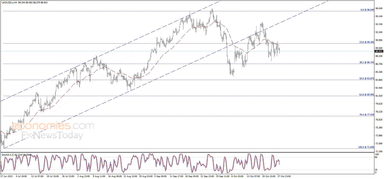 Brent oil price faces new negative pressure to attack 89.45 level and attempts to hold below it, which urges caution from the upcoming trading, as confirming the break will put the price under negative pressure for the rest of the day to head towards testing 86.75 areas mainly, while the price needs to surpass 90.30 to revive the positive scenario that its first target located at 91.85.