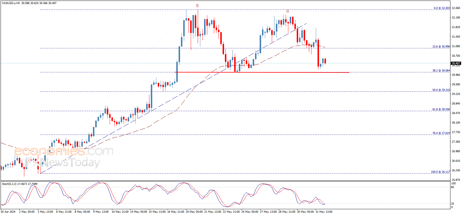 - Gold price is testing the neckline of the head and shoulders’ pattern that appears on the chart, waiting to break this level at 2317.40$ to activate the negative effect of the mentioned pattern followed by rallying to achieve bearish correction that its targets begin at 2272.05$ and extend to 2217.10$.