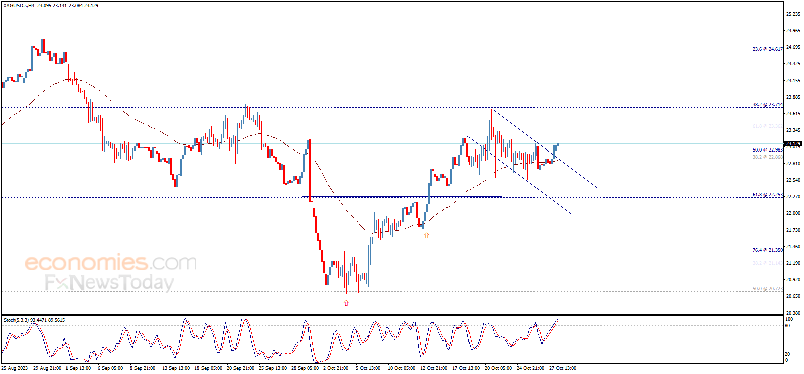 Silver price ended last Friday positively to breach 23.00 and settles above it, noticing that the price completed forming bullish flag pattern that appears on the chart, which leads the price to build new bullish wave that we expect to target testing 23.70 level initially.
