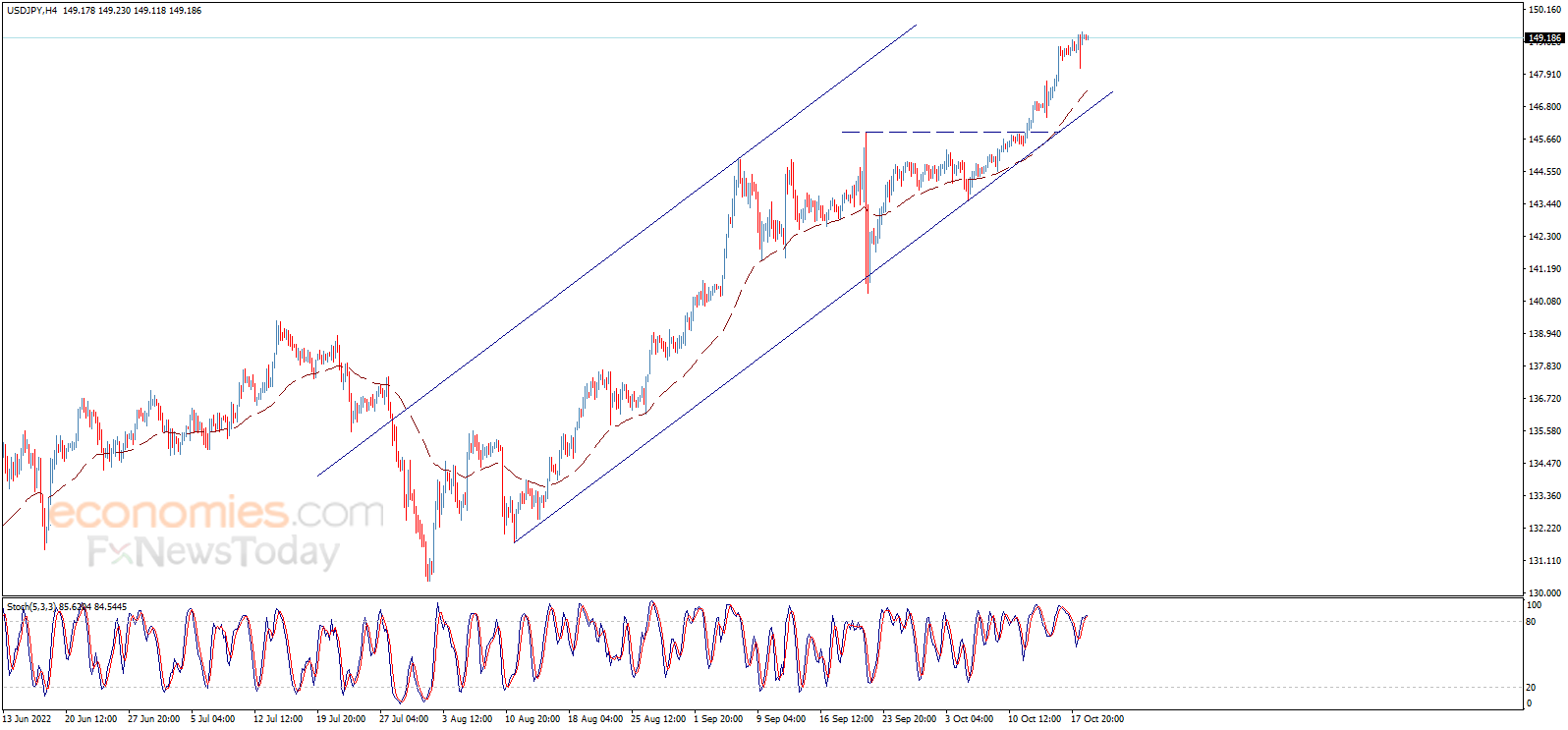 The USDJPY pair managed to surpass 149.00 level and closed the daily candlestick above it, reinforcing the expectations of continuing the bullish trend on the short term and medium term basis, noting that we are waiting to visit 150.00 barrier as a next main target.