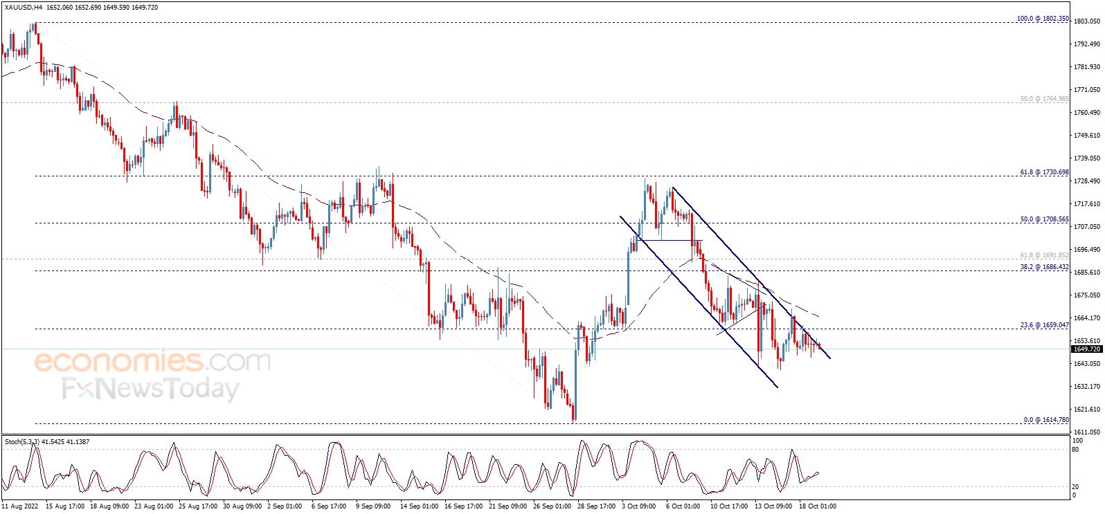 Gold price fluctuates around the bearish channel’s resistance line, crawling gradually to the downside, while the EMA50 continues to press negatively on the price, to keep the bearish trend scenario valid and active for the upcoming period, waiting to visit 1630.00 followed by 1615.00 levels as next main targets.