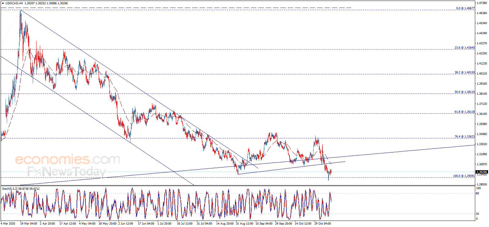 The USDCAD pair did not show any strong move yesterday, to continue fluctuating around 1.3020, and the EMA50 continues to press negatively on the price, while stochastic continues to provide the negative signals on the four hours’ time frame.