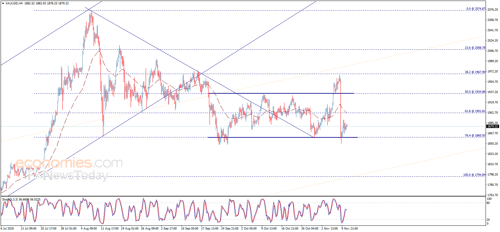 Gold price settles around 1880.00, and the price needs to get positive motive that assists to push trades to continue rising and move away from 1860.90 level, waiting to head towards 1901.80 followed by 1934.86 levels that represent our main positive targets.