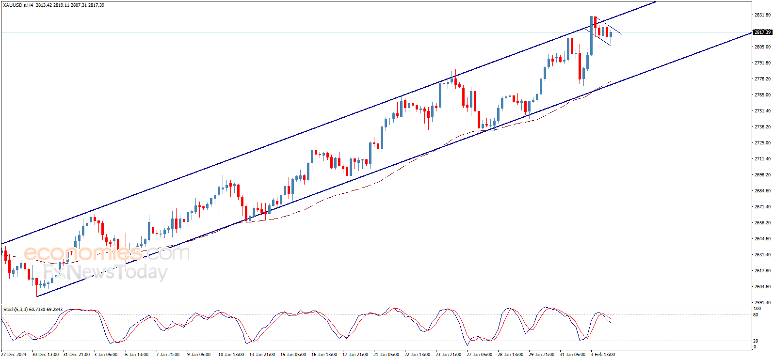 Gold price shows slight bearish bias, noticing that this decline is confined within minor bearish channel that we believe it forms bullish flag pattern, thus, breaching 2821.00$ will provide good positive motive that supports the expectations of continuing the bullish trend in the upcoming period.