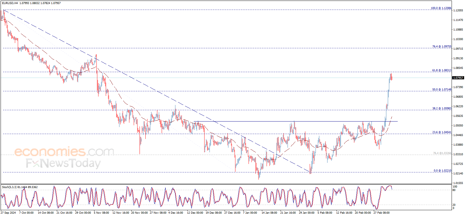 The EURUSD price fluctuates around 1.0800$ barrier, affected by stochastic negativity to show some bearish bias, waiting to gather positive momentum that assist to push the price to resume the positive trades and breach 1.0830$ to open the way to rally towards 1.0975$.