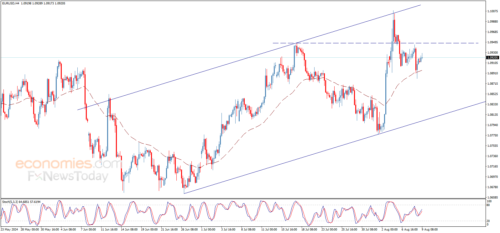 The EURUSD price shows slight bullish bias to crawl towards 1.0947$, and as long as the price is below this level, our bearish overview will remain valid for today, supported by stochastic loss to the positive momentum, reminding you that our main waited target is located at 1.0805$.