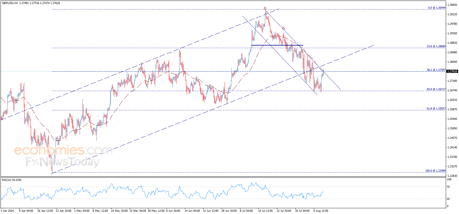 The GBPUSD price continues to fluctuate around 1.2760$ and attempts to consolidate below it, to keep the bearish trend scenario valid until now, supported by the negative pressure formed by the EMA50, waiting to head towards 1.2670$ as a first station, reminding you that the continuation of the bearish wave requires holding below 1.2760$ and 1.2790$.