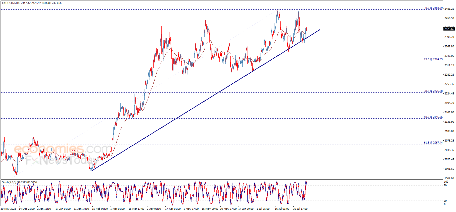 Gold price didn’t any strong move since morning, thus, no change to the expected bullish trend scenario for today, which targets 2450.00$ followed by 2483.40$ as next main stations, reminding you that the continuation of the bullish wave requires holding above 2396.50$.