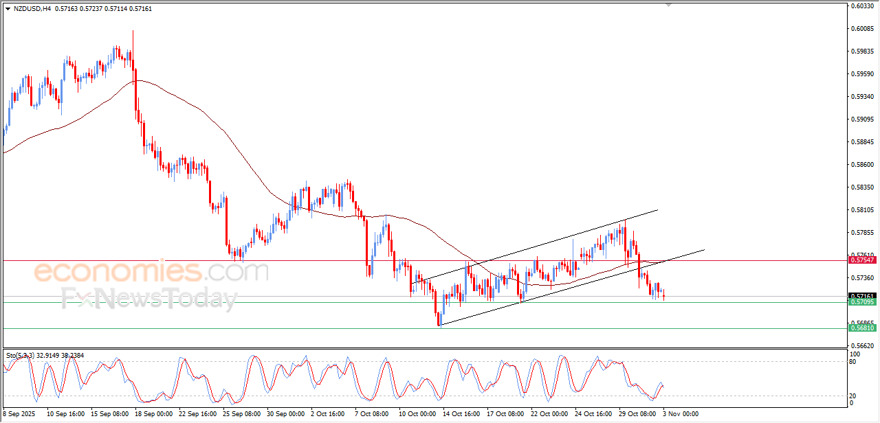 The (NZDUSD) price decline in its last trading on the intraday basis, amid the continuation of the negative pressure due to its trading below EMA50, which intensifies the negative pressure that came from its affection by the price’s exit bullish corrective channel’s range that supported its move in the short-term basis, besides the emergence of negative overlapping signals on the relative strength indicators, after offloading its oversold conditions, reinforcing the chances of extending the losses on the near-term basis.