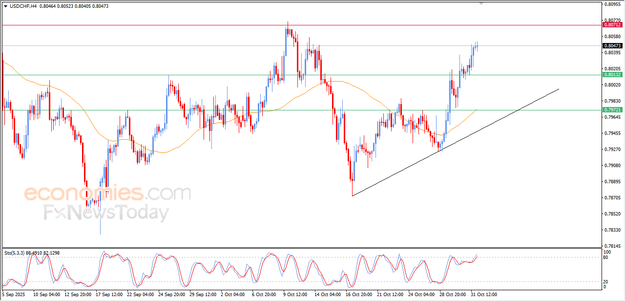 The (USDCHF) price continued its rise in its last intraday trading, amid the dominance of the bullish trend and its trading alongside minor trendline on the short-term basis that supports this track, the price takes advantage of its continuous trading above its EMA50, intensifying the positive signals on the relative strength indicators, despite reaching overbought levels.