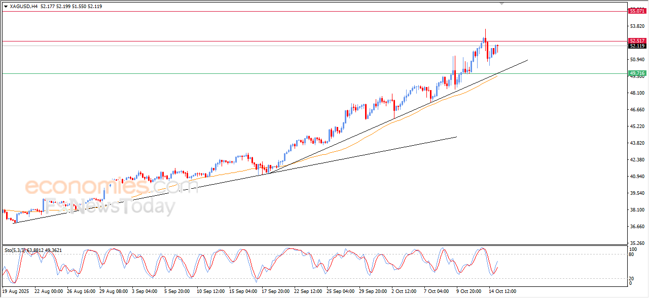 The (silver) price settled high in its last intraday trading, preparing to attack the current resistance at $52.50, supported by forming positive divergence on the relative strength indicators, after reaching sever oversold levels compared to the price move, with the emergence of the positive signals, amid the dominance of the main bullish trend on the short-term basis and its trading alongside main and minor trendlines that indicate the stability of this track.