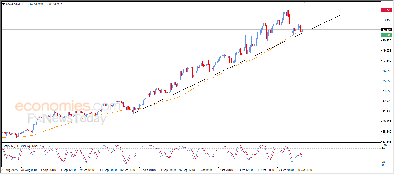 The (silver) price settled low in its last intraday trading, with the emergence of the negative signals on the relative strength indicators, after offloading its oversold conditions in our previous moves, leaning on the support of its EMA50, accompanied by testing main bullish trend line on the short-term basis, the importance of this level as a support might help the price to gain the required bullish momentum to recover and rise again.
