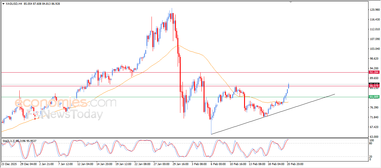Silver prices kept rising in their last intraday trading, attacking the previous suggested target in our previous analysis at $86.00 resistance, indicating that the price remains aligned with the bullish scenario, with growing buying appetite, supported by a solid technical structure that reinforces the chances of the continuation of the bullish rally on near-term basis.