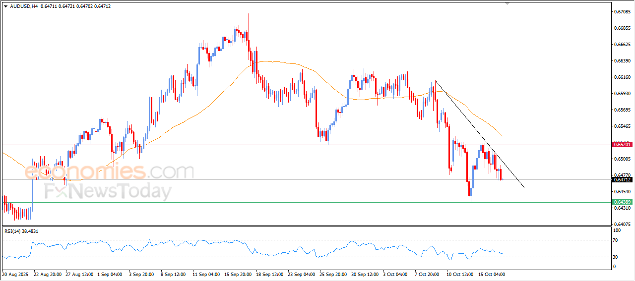 The (AUDUSD) price declined in its last intraday trading, amid the continuation of the negative pressure due to its trading below EMA50, reinforcing the stability and dominance of the main bearish trend, amid its trading alongside minor trendline on the short-term basis, besides the emergence of the negative signals on the relative strength indicators.