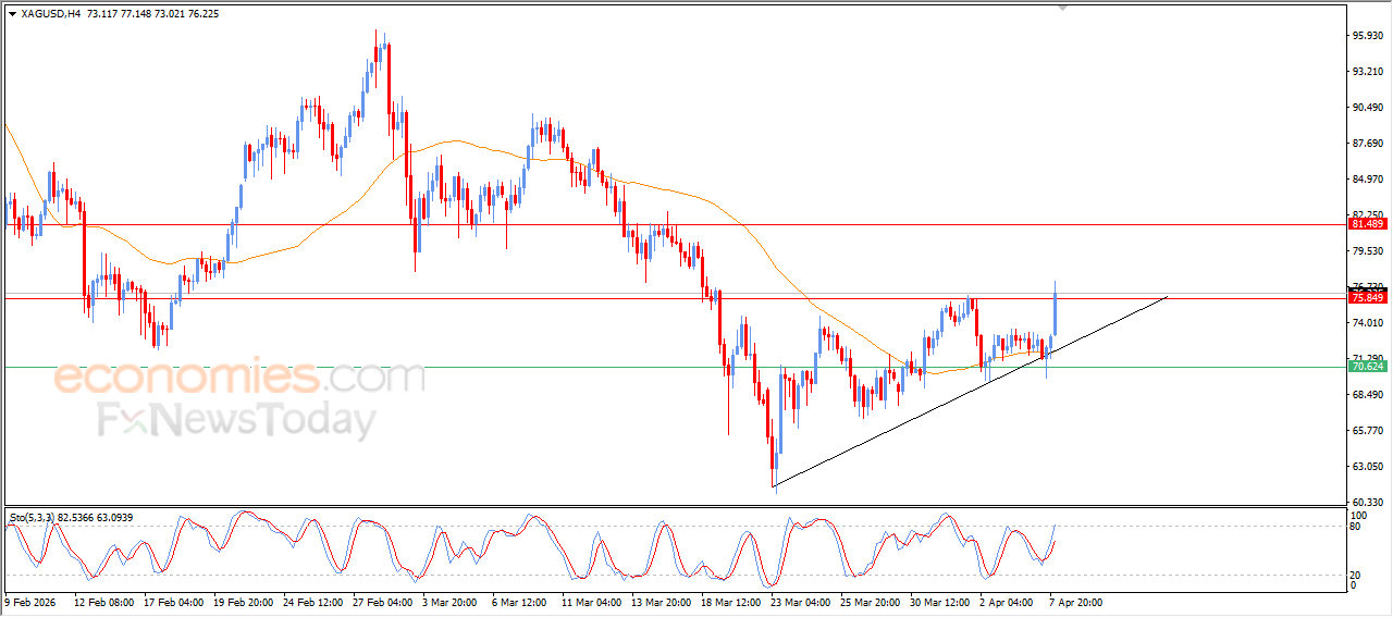Silver surged during its recent intraday trading, achieving notable gains and successfully surpassing the key resistance level at $75.85, which represents preferred target in previous analysis. This strong performance comes amid a short-term corrective bullish wave, with price movements continuing alongside a supportive trendline that reinforces the stability of this positive path.