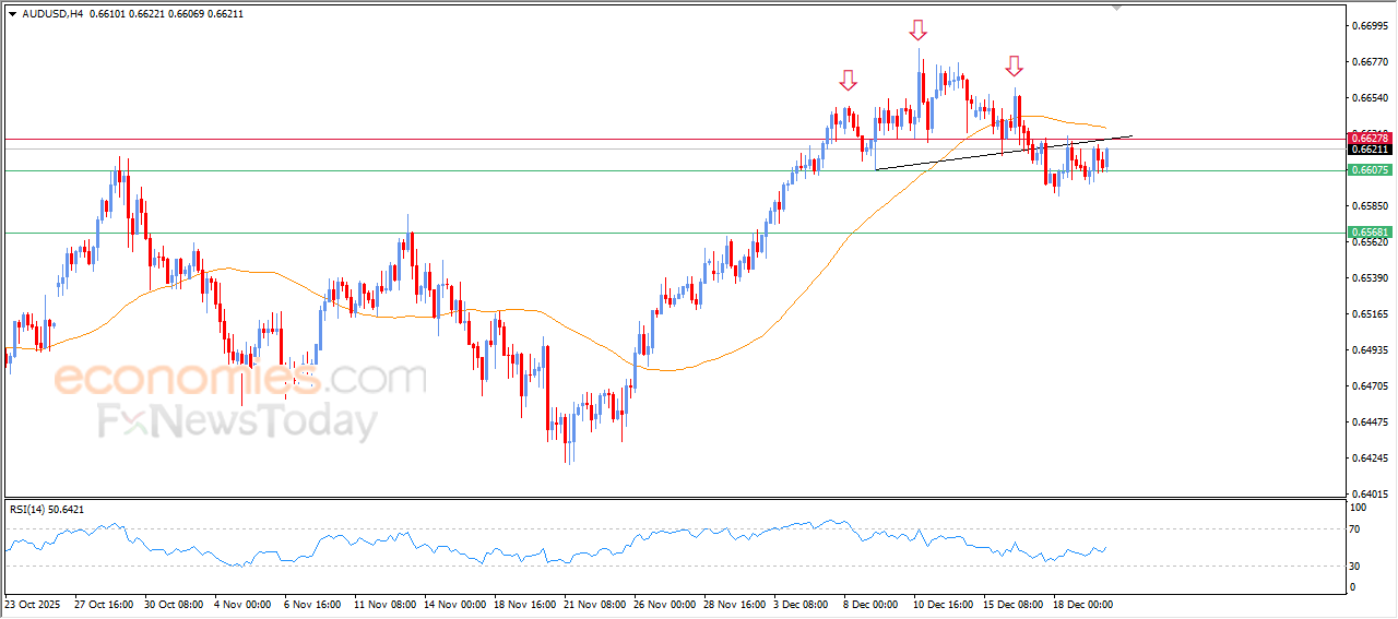 The (AUDUSD) price rose in its last intraday trading, supported by the emergence of the positive signals on the relative strength indicators, affected by negative technical formation on the short-term basis that is represented by head and shoulders pattern, with the continuation of the negative pressure due to its trading below EMA50, reducing the chances of the recovery on the near-term basis.