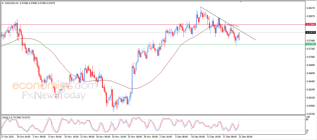 The (NZDUSD) price rose in its last intraday trading, supported by the emergence of positive signals from relative strength indicators, after reaching oversold level to offload these conditions, with the continuation of the negative pressure due to its trading below EMA50, reinforcing the dominance and stability of the bearish corrective track on the short-term basis, especially with its trading alongside trend line.